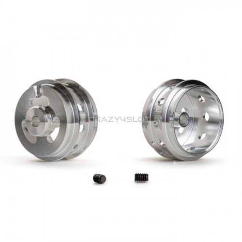 Aluminum Ø17.3x9.75x1.5mm wheels, M2 grub, double shoulder holed channel,
